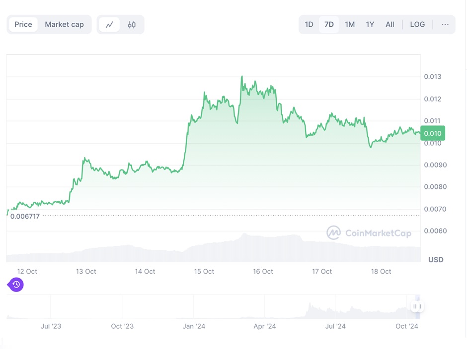 Having secured over 106% gains in the past month, Turbo (TURBO) coin stands as the highest altcoin gainer in the past month. As a relatively new meme coin, Turbo coin still holds a bullish momentum for the year as its price just reached its highest level three days ago at $0.01318.