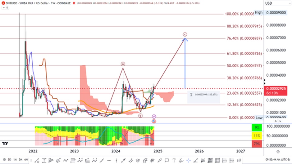 Shiba Inu has been on an upward trend for the last few months, with significant gains in the different time frames. By the time of writing, the meme token had depreciated by 6% over the past 24 hours, signaling short-term dips exchanging hands at $0.0000278.