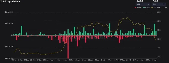 The Crypto Industry is in turmoil as the market cap struggles to find support. Many cryptocurrencies have fallen with it, leading to millions in liquidations. The recent downturn in the market can be attributed to a series of negative news stories affecting the sector, including the shutdown of Silvergate and a lawsuit against KuCoin regarding the alleged sale of unregistered securities. These events have had a significant negative impact on the market
