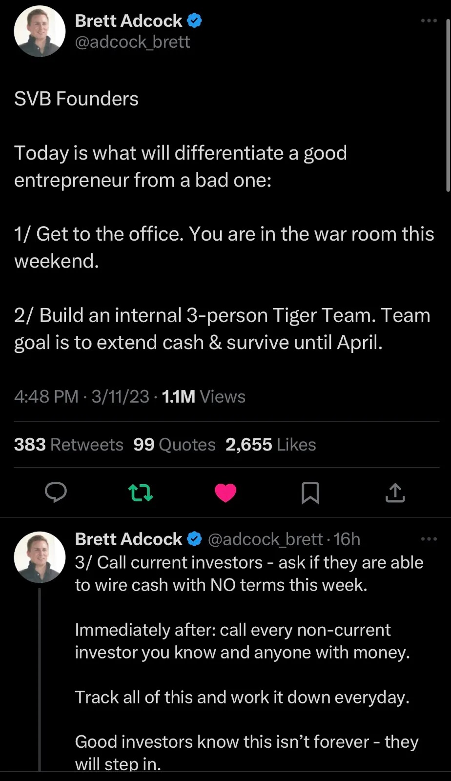 Crazy high valuations, oversized venture rounds, mismanaged funds, stupendous marketing budgets & CAC spending, excessive salaries pricing talent too high, now we can all rest and build more sustainable businesses. Startups and VCs also threw risk management out the door concentrating all their funds in single accounts. We will see less competition from too many businesses doing the same thing and racing to zero with revenue. I continue to expect more consolidations, faster exits, and the emergence of category kings.