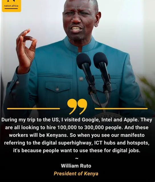 President Ruto said that he believes that Kenya has the potential to become a hub for innovation and technology in Africa, and that he wants to harness the talent and creativity of the Kenyan people. He said that he has been inspired by the success stories of other African countries, such as Rwanda and Ghana, that have embraced digital transformation and attracted foreign investment.