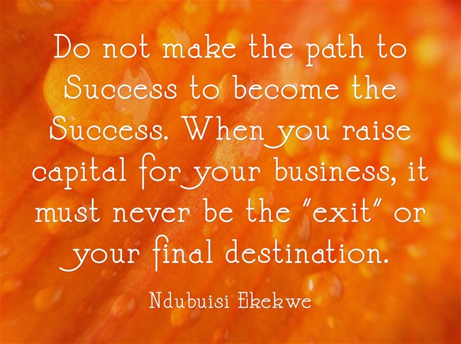 Do not make the path to Success to become the Success. When you raise capital for your business, it must never be the “exit” or your destination. The qualification to the next level depends on your performance at the current level. As entrepreneurs and founders, we must show respect to investors’ capital, across Africa.