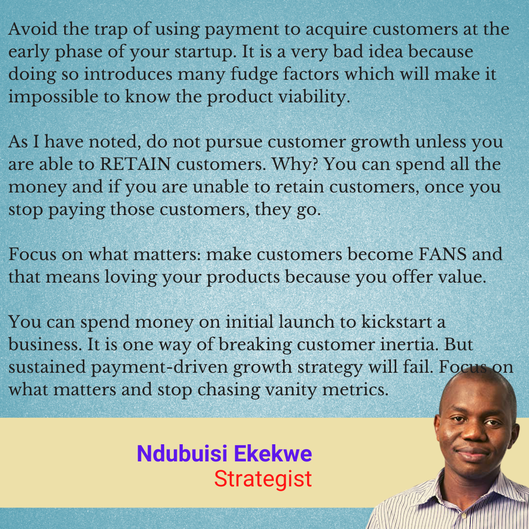 You can spend money on initial launch to kickstart a business. It is one way of breaking customer inertia. But sustained paid-driven growth strategy will fail. Focus on what matters and stop chasing vanity metrics.