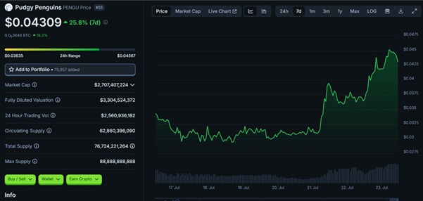 PENGU isn’t just riding nostalgia. Its success is rooted in strong fundamentals. Built on Solana for speed and low fees, it integrates with Lufthansa’s loyalty program, partners with NASCAR, and offers gamified use via “Pengu Clash,” a Telegram-based Web3 game. The token is also used in e-commerce through the Pudgy Shop, blending real-world and digital utility.