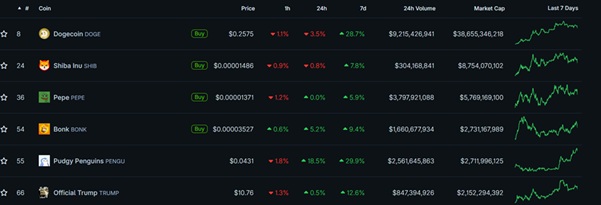 Top Meme Coins by Market Cap | Source: CoinGecko