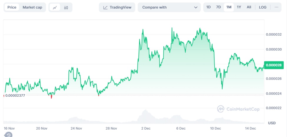 1-week Shiba Inu price chart- source: CoinMarketCap