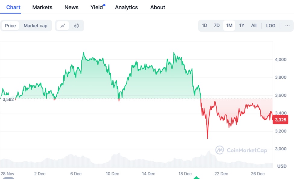 Now nearing the end of December, all eyes are on Ethereum’s price action as it targets a possible breakout above $4,000. Solana is gaining momentum with solid ecosystem growth, and Yeti Ouro (YETIO) catching firm speculation making investors swarm for quick results.