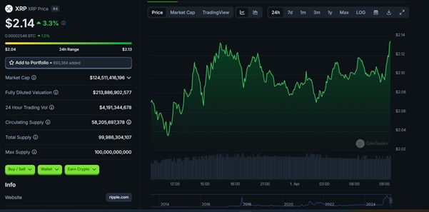 XRP Price Chart (24-Hour), Apr. 1, 2025 | Source: