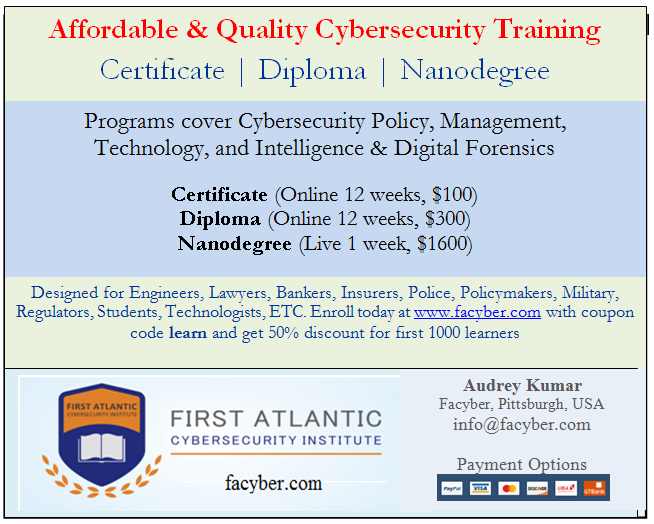 Summary: First Atlantic Cybersecurity Institute, Pittsburgh USA (www.Facyber.com) has launched an online cybersecurity training portal. It is a high quality program and yet affordable. We offer affiliate marketing that pays 20% of earned gross to people that bundle at least 10 learners at a time.
