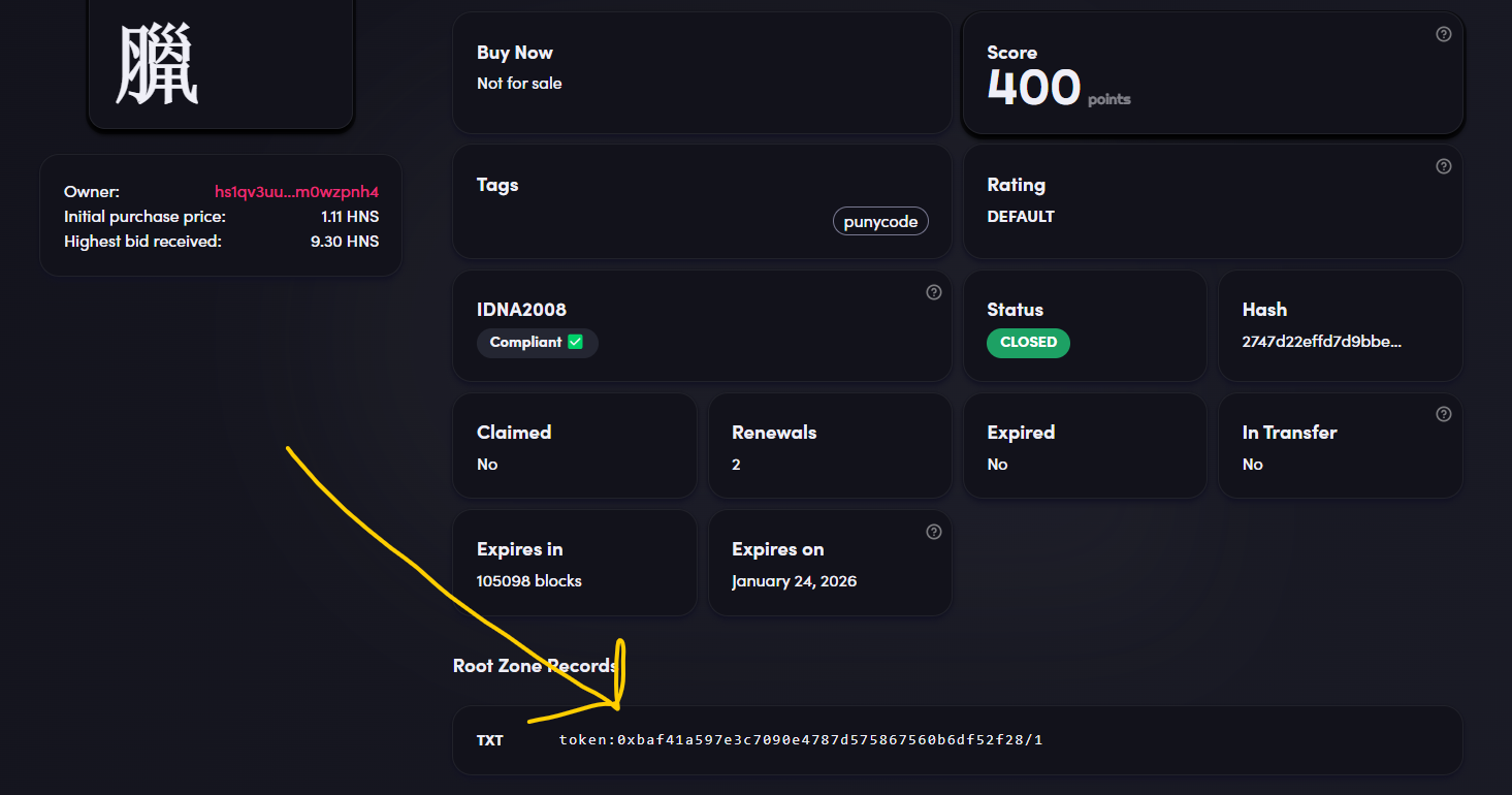 Combined with a fully functional single character Top Level Web 3 Domain – quote Niami ‘Handshake TLDs are open for anyone to register, transparent for anyone to audit, and extensible for uses from domain names to wallet names to usernames’