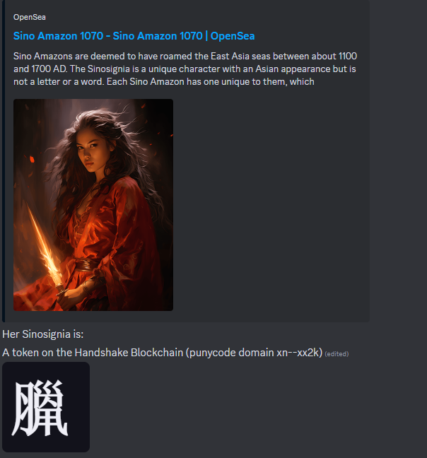 One of the things is a HIP (Handshake Improvement Proposal), just to standardize the protocol for the embedded text that links the Sino Amazon and Sinosignia tokens.