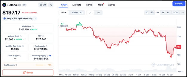 Solana and XRP are two of the strongest-performing altcoins as the 2025 bull run gains momentum. Solana is currently trading near $198, while XRP sits at $2.64, both enjoying renewed institutional interest and strong retail participation. Analysts predict Solana could rally toward $500 and XRP could climb beyond $5 in the coming months, offering investors steady and respectable returns.