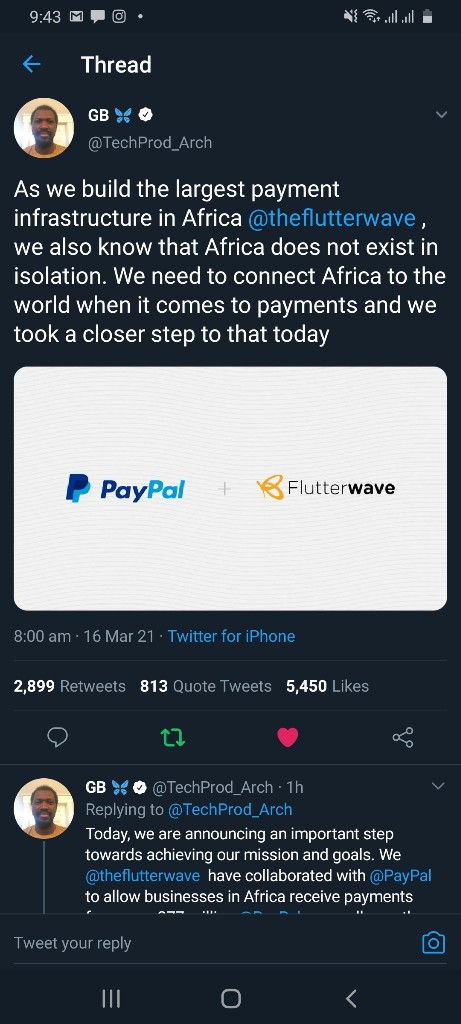 This is the Sweetest news I heard today. Great job Team Flutterwave! From crossing the $1 billion valuation and achieving the Unicorn Status to this great achievement, you have made yourself the Pride of the African Entrepreneurs who sometimes have to use short-cuts to set up Paypal account.