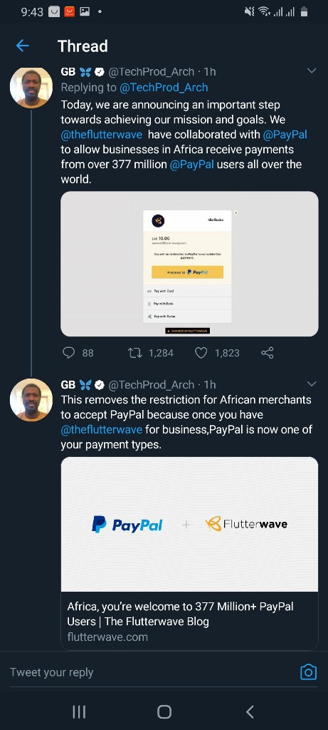 The collaboration will be instrumental in supporting SMEs and freelancers to overcome the many challenges presented by the highly fragmented and complex payment and banking infrastructure, as well as connecting them with more than 377 million PayPal account holders globally.” This is monumental as more people can reach the Western Europe and American customers, out of Africa.