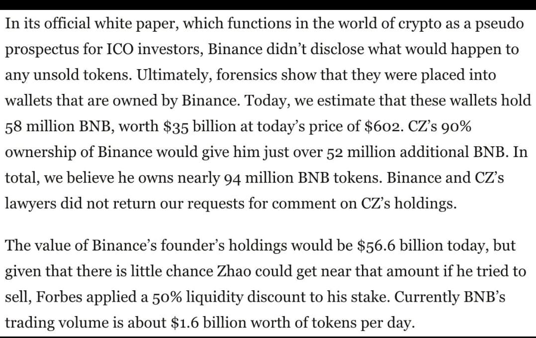 Recent reports have highlighted a significant concentration of Binance Coin (BNB) ownership. A forensic analysis by Gray Wolf Analytics, as reported by Forbes, indicates that Changpeng Zhao, the former CEO of Binance, holds approximately 64% of the circulating supply of BNB, equating to around 94 million tokens. This revelation places Zhao’s net worth at an estimated $61 billion, ranking him as the 24th richest person globally. The BNB token, used within the Binance platform for fees and rewards, has a maximum supply of 200 million, with over 153 million tokens currently in circulation.