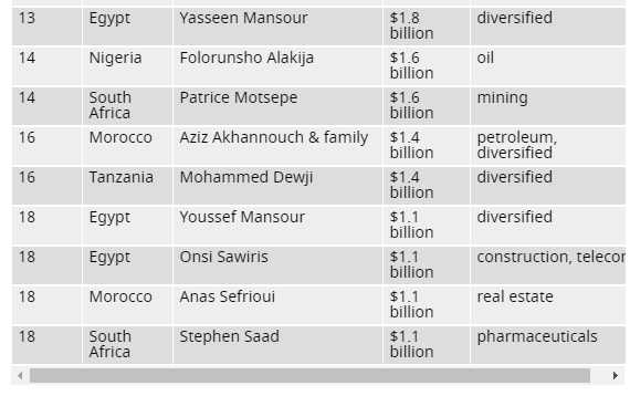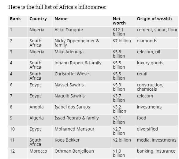 Nothing surprising, as usual, as it has been a static list with the same old people for years. Wealth is not mobile in Africa for many reasons. One of the reasons is that you need a huge public sector connection to have a breakthrough in the continent. And once you are in, you make sure no one comes into the club.