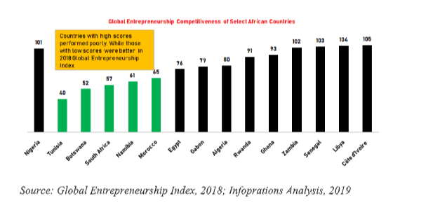 Answers to this question lies with the Global Competitiveness and Entrepreneurship Indexes perception of the country in 2018. The two indexes, according to their proponents, rank countries across the world, considering certain indicators at individual and aggregate levels.