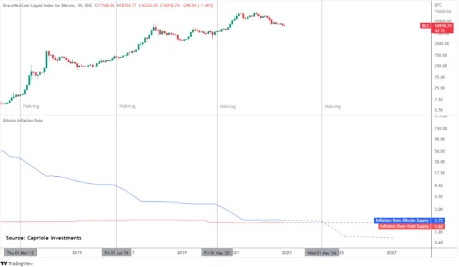 This, Capriole added, will confirm Bitcoin as “the hardest asset in the world” at its next block subsidy halving in 2024.