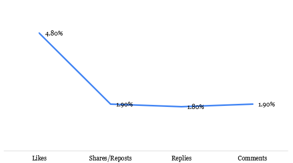 While a substantial follower count may suggest greater potential reach for advertising campaigns, the relationship between followers and engagement is far more complex. Our analysis, visualised in Exhibit 3, aligns with existing research indicating that likes are the most significant form of interaction followers have with brands during digital advertising or promotional periods.