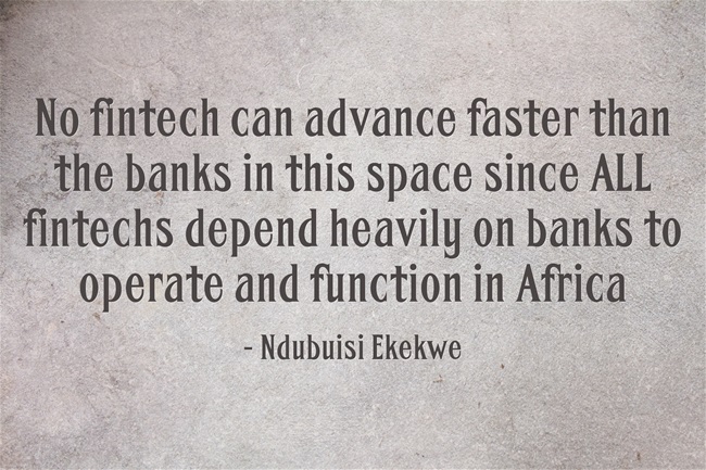 No fintech can advance faster than the banks in this space since ALL fintechs depend heavily on banks to operate and function in Africa. The Central Bank of Nigeria may not be wrong when it felt the banks can get it more users at scale.