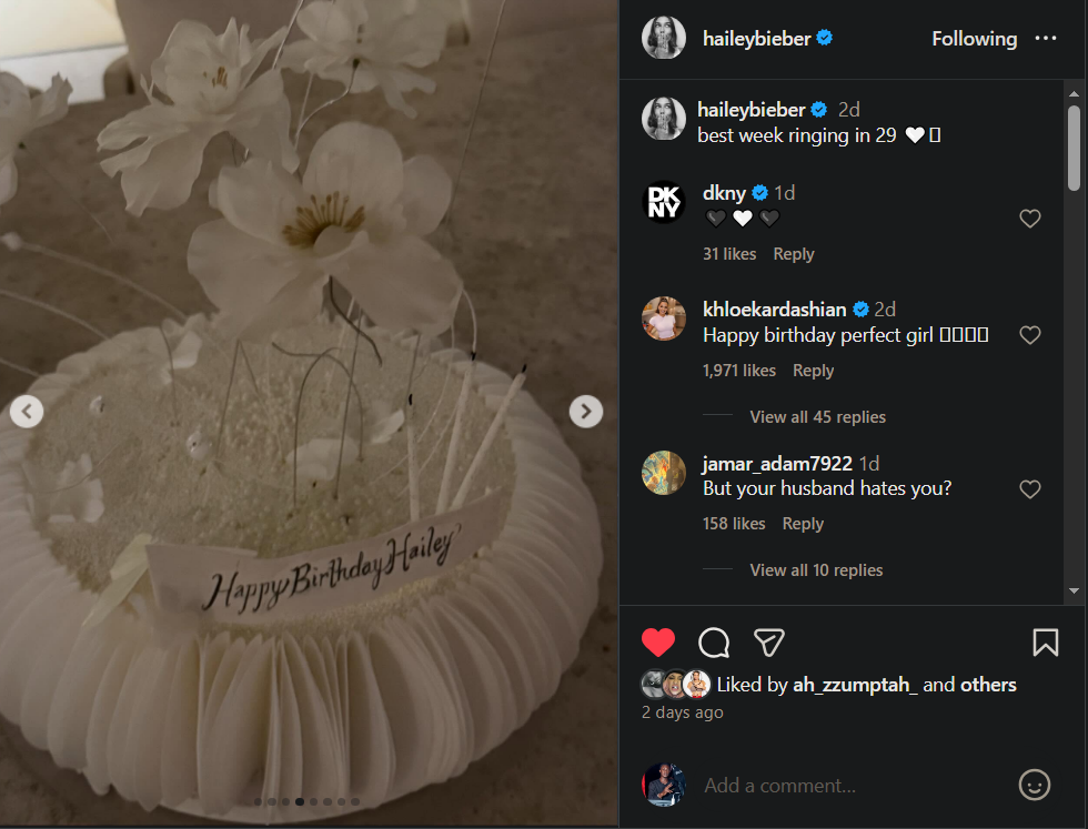 A glimpse inside Hailey Bieber’s 29th birthday celebration with her husband, Justin Bieber.