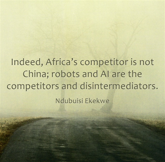 Indeed, Africa’s competitor is not China; robots and AI are the competitors and disintermediators.