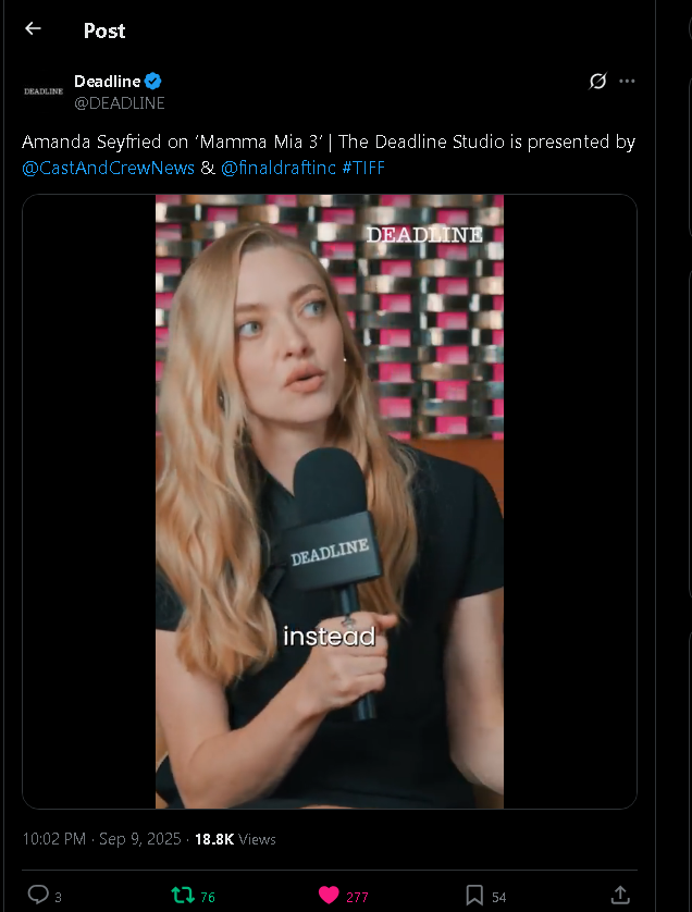 Amanda stated to Deadline on X September 9 at the Toronto International Film Festival, "It is, yes," before hesitatingly adding, "I think."