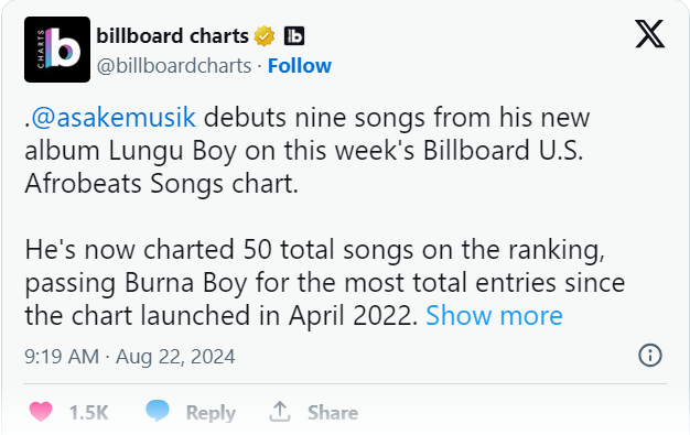 Asake's Meteoric Rise: 50 Billboard Afrobeats Chart Entries