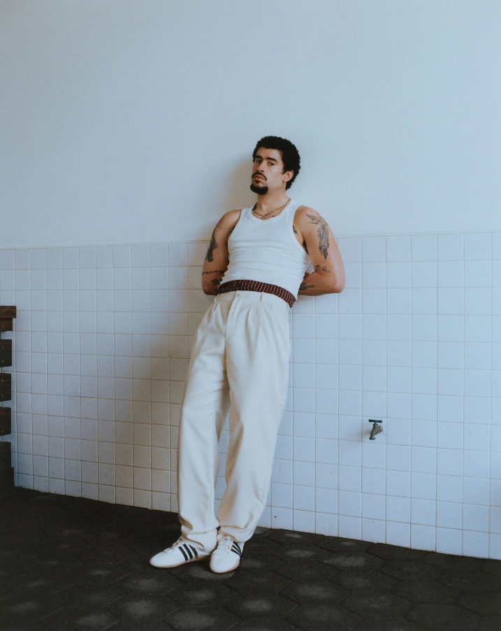 Bad Bunny's entire ensemble was an all-white Zara outfit that included matching sneakers, a structured jacket with football shoulder pads, and a pair of chinos. The "Callaíta" rapper chose to wear a double-breasted blazer in the same color scheme later in his live performance.