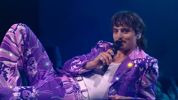Benson Boone lit up the 2025 American Music Awards stage with a dazzling performance of his hit single "Mystical Magical". Dressed in a purple patterned suit adorned with rhinestones, Boone kicked off his performance with smooth vocals before launching into his signature backflip, impressively clearing an entire staircase.