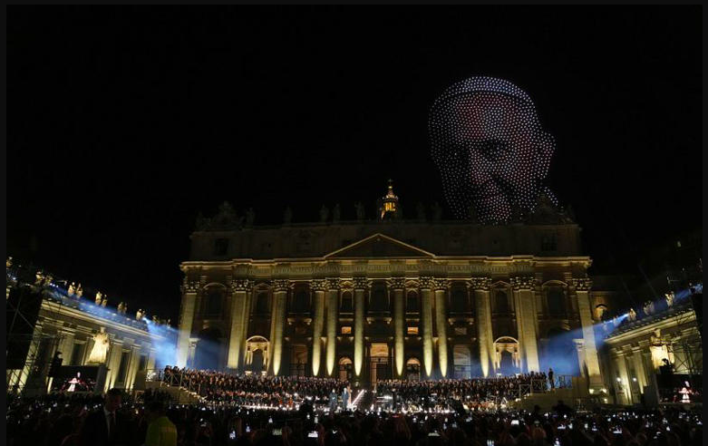 Over 80,000 attended the Vatican’s Grace for the World concert featuring Andrea Bocelli, Pharrell Williams, and other international artists, followed by a breathtaking drone show celebrating unity, fraternity, and human connection.