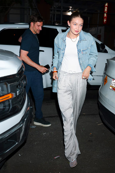 Cooper, who has an 8-year-old daughter named Lea with his ex-girlfriend Irina Shayk, wore a black t-shirt and dark-wash jeans for a more laid-back look, while Hadid, who has a 4-year-old daughter named Khai with her ex-boyfriend Zayn Malik, wore a stylish white t-shirt, silver leggings, and a light-wash denim jacket.