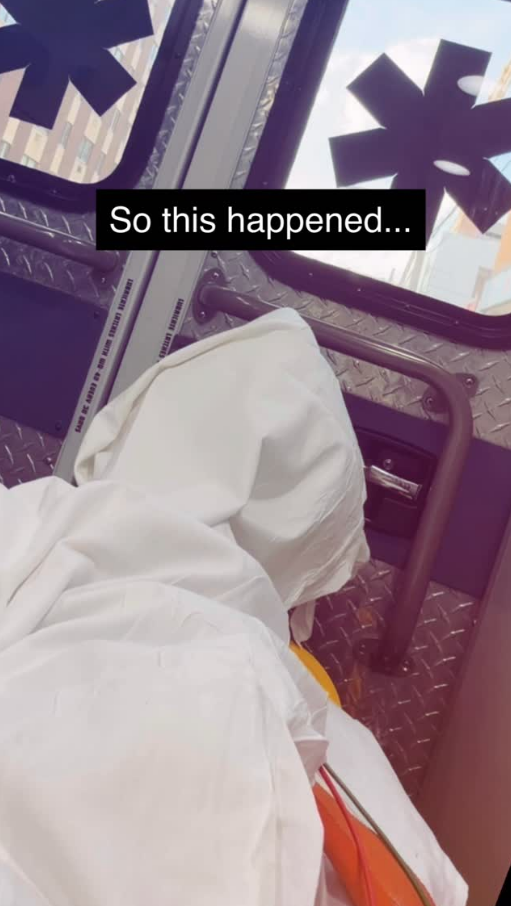 "Yesterday was quite a day," on April 16, she wrote a description for a video that was uploaded to Instagram showing her in the back of an ambulance. "I was on my way to NY for something I am very passionate about. But had a small 'medical emergency' on the plane."