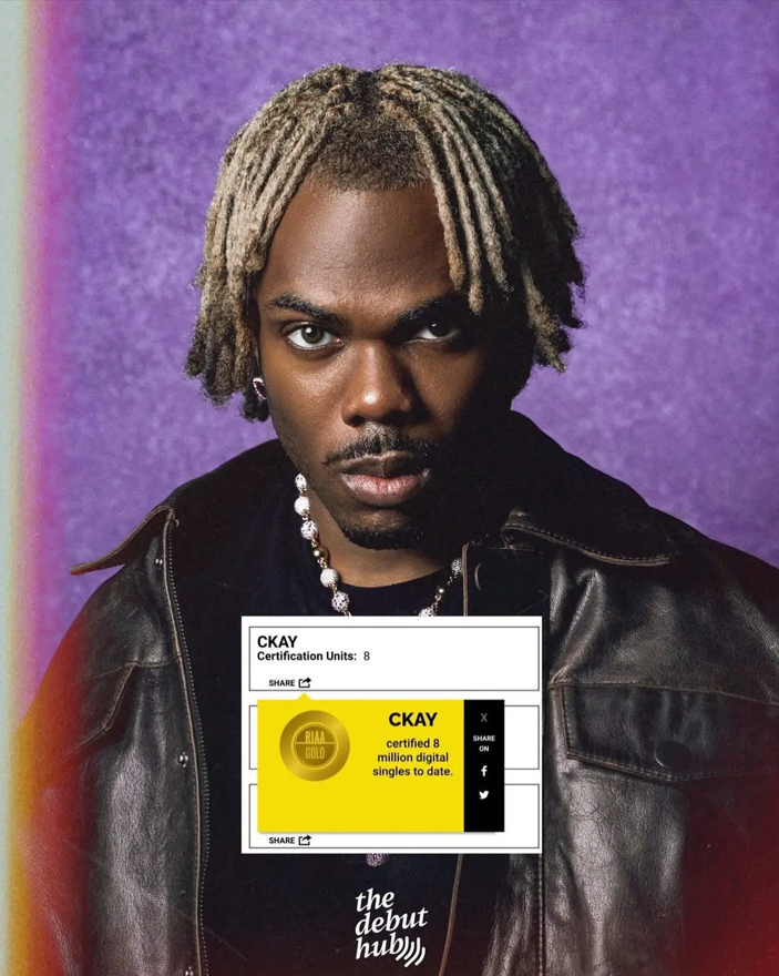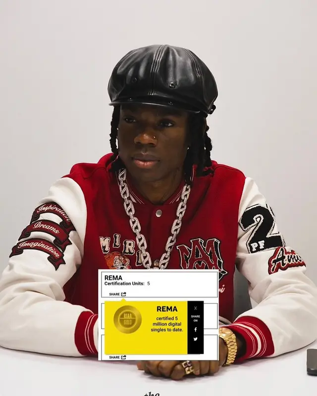 Rema also the third highest selling Nigerian artist in the US with over 5 million units sold, success from his mega-hit single 'Calm Down' which has been declared 6 times RIAA platinum.