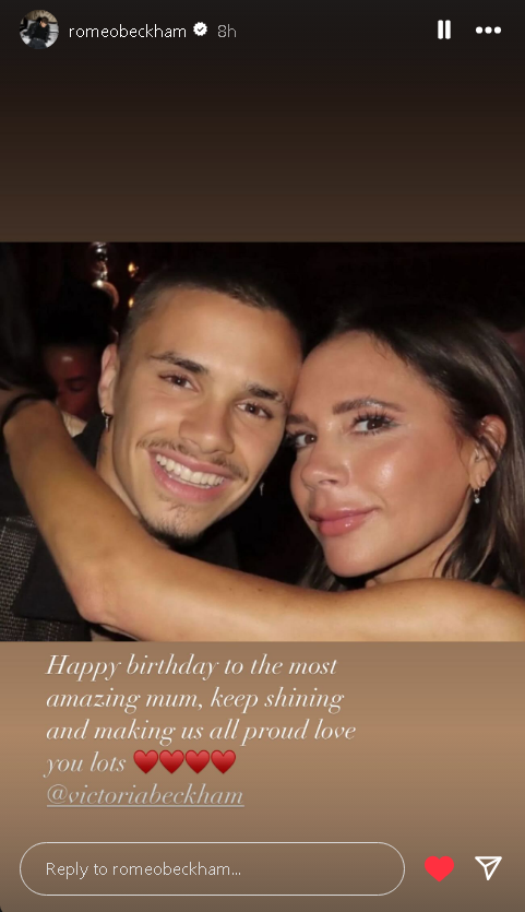 The Beckham family truly knows how to celebrate with love and warmth! Cruz's heartfelt message to Victoria, paired with a nostalgic photo, beautifully highlights his admiration and gratitude for her. Meanwhile, Romeo's sweet words and selfie add a personal and touching note to the celebration. It's wonderful to see such genuine affection and pride shared within their family.