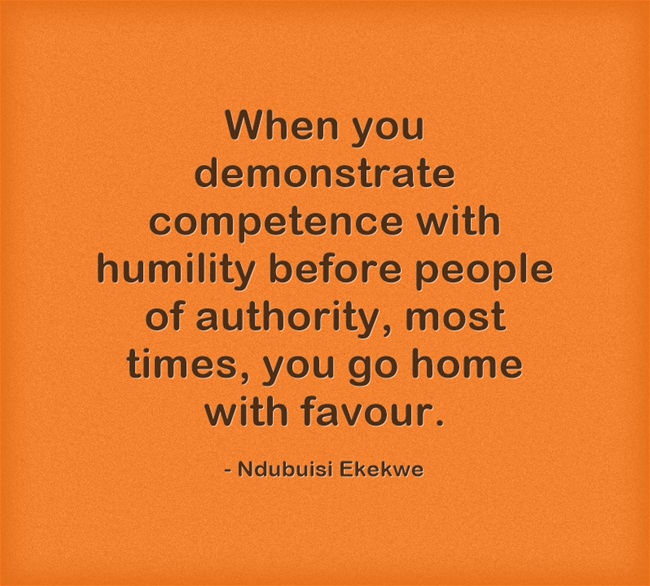Quote from Ndubuisi Ekekwe on May 16, 2019, 3:43 AMWhen you demonstrate competence with humility before people of authority, most times, you go home with favour.