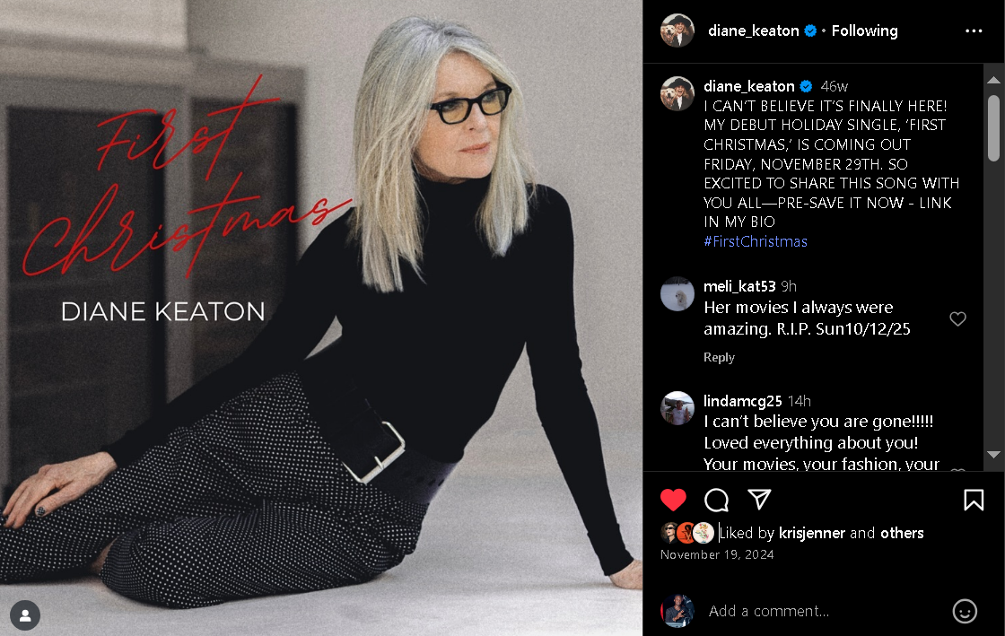 "I CAN'T BELIEVE IT'S FINALLY HERE!" in November 2024, Diane posted something on Instagram. "MY DEBUT HOLIDAY SINGLE, ‘FIRST CHRISTMAS,' IS COMING OUT FRIDAY, NOVEMBER 29TH."