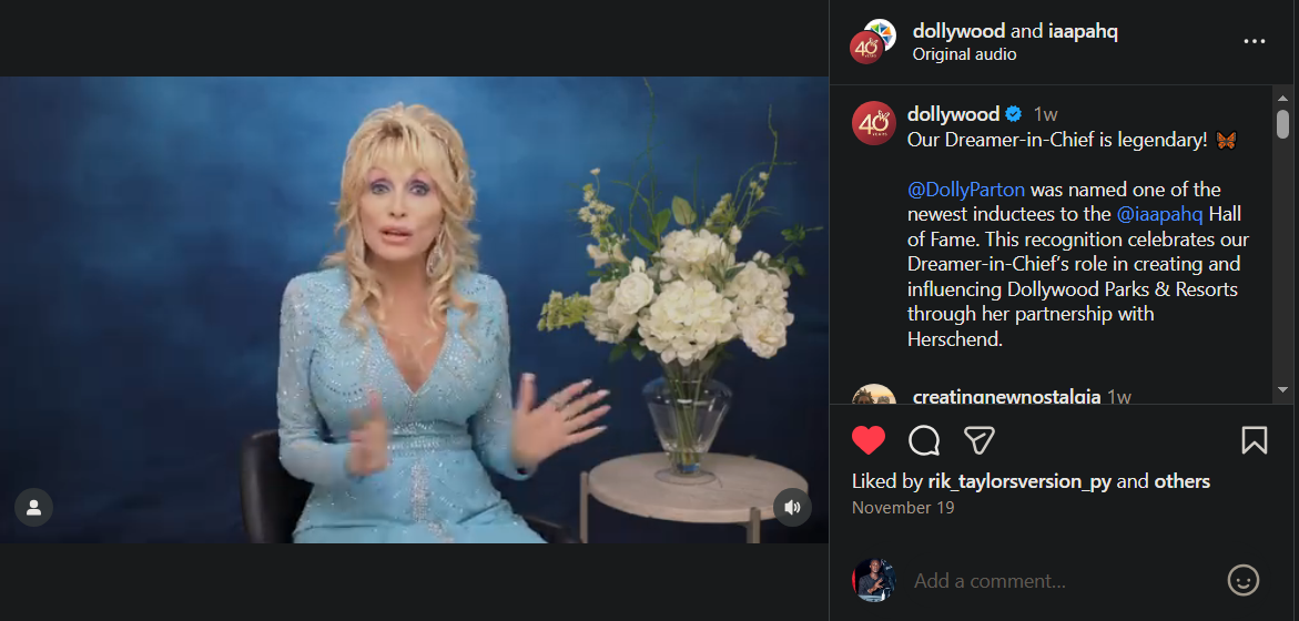 Dolly has recently reduced her public appearances because of her health; thus, her video offers a unique look into her current life. The country music artist was honored for her Dollywood theme park earlier this month, but she was unable to attend her induction into the International Association of Amusement Parks and Attractions (IAAPA) Hall of Fame. Instead, she sent a video greeting.