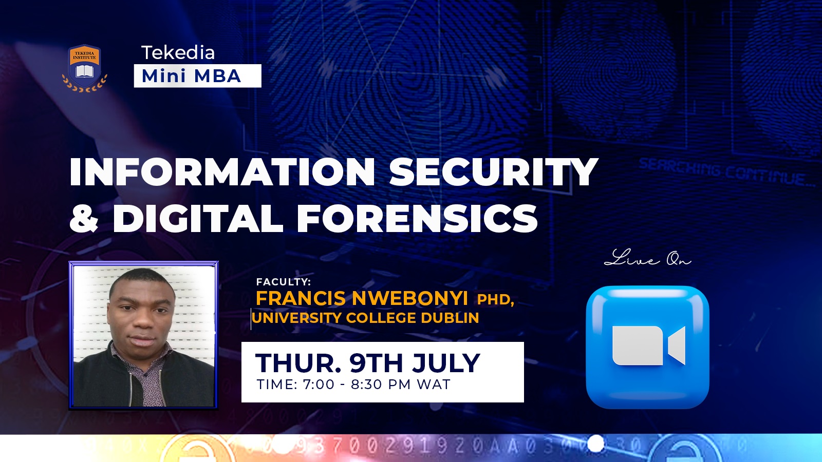 Dr. Francis Nwebonyi is starting very soon. Join Tekedia Mini-MBA live as we discuss Information Security & Digital Forensics, and how to secure your business and digital assets.