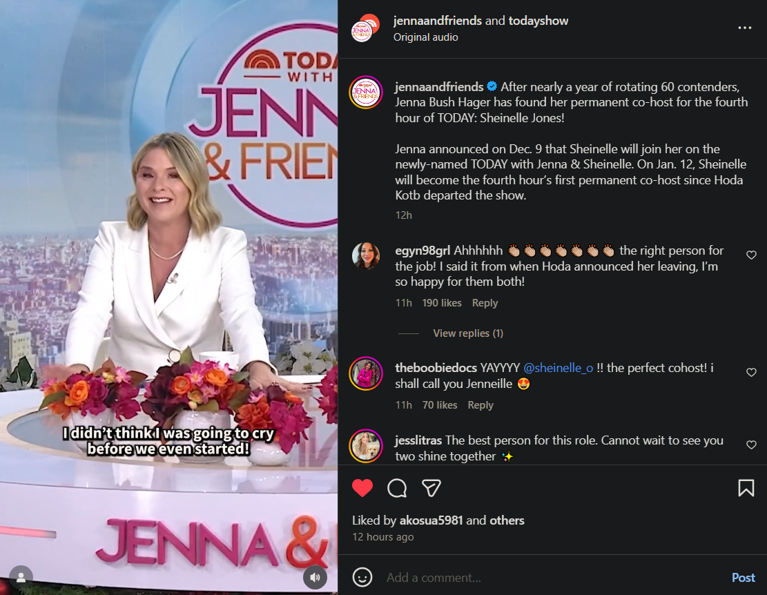 "Today, I am so thrilled to announce I have found my forever friend, and we are going to start a brand-new journey in January,” Jenna stated in the morning show's December 9 broadcast. “I couldn't be more excited to share this person with you all. You all know her. She's an extraordinary broadcaster, but more importantly, she exemplifies exactly what this show is all about."