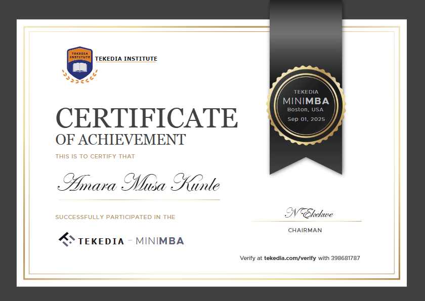 We have issued thousands of this certificate to professionals and learners. And because of the demand on the verification from companies, we automated the process. On Sept 15, we will begin a new edition of Tekedia Mini-MBA - the best edition yet - and it is time to register. Register, co-learn and get your certificate here https://school.tekedia.com/course/mmba18/