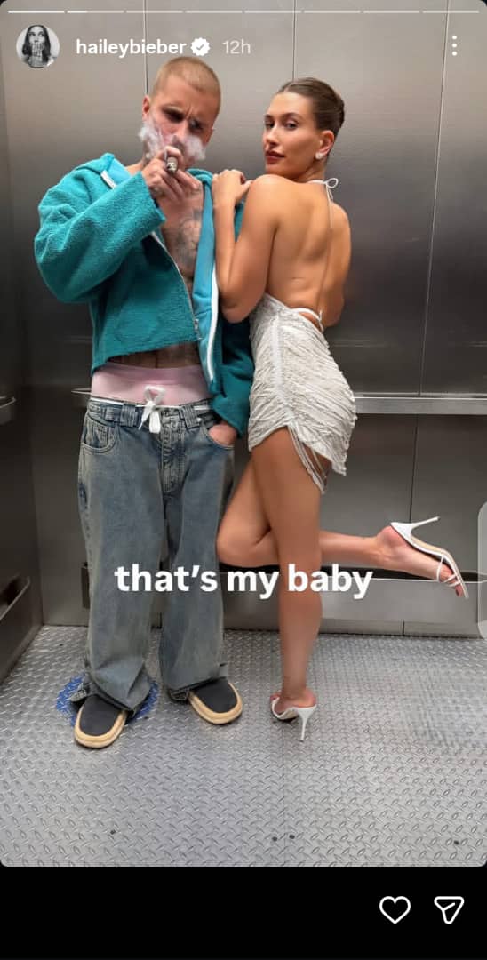 She commented, "That's my baby," above a picture of Hailey curled up on Justin's shoulder.