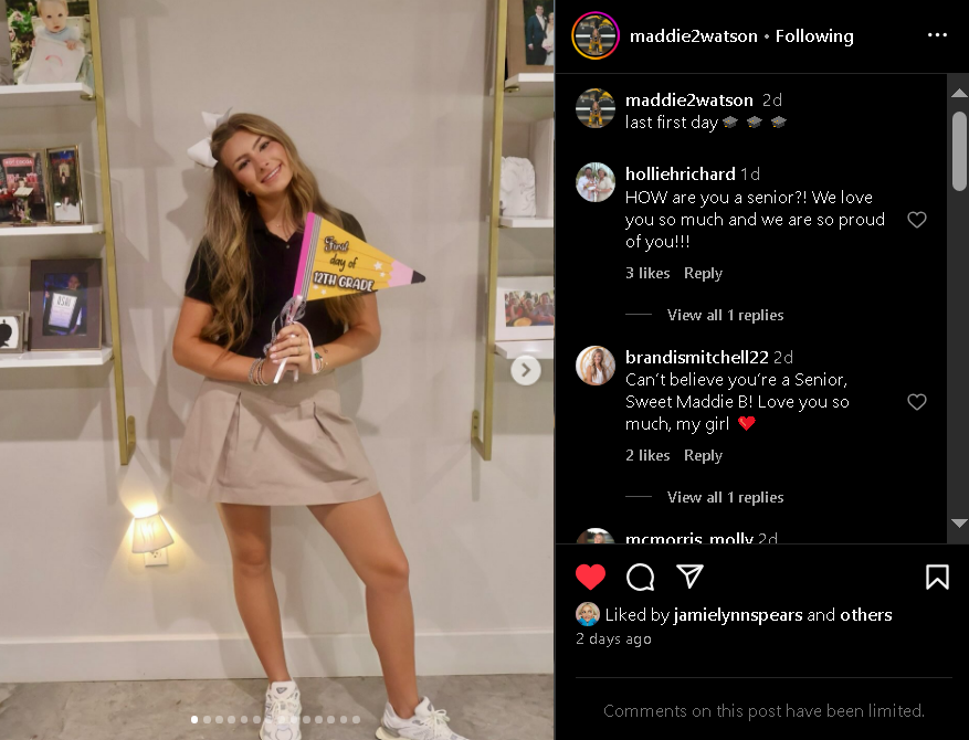 Jamie Lynn Spears’ daughter Maddie, now 17, begins her senior year of high school.