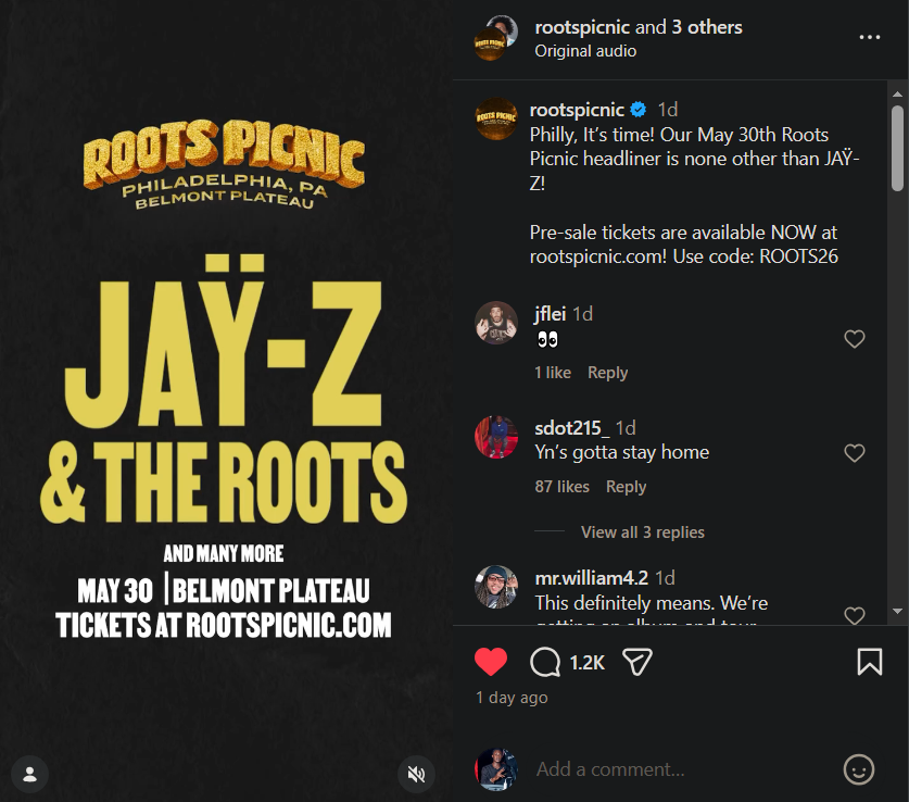 Jay-Z has 99 issues, but his name isn't one of them. In anticipation of his impending reunion with The Roots, the rapper slightly changed his name. On the billing for the annual Roots Picnic in Philadelphia on May 30, he added an umlaut to his title, making it reads JAŸ-Z.