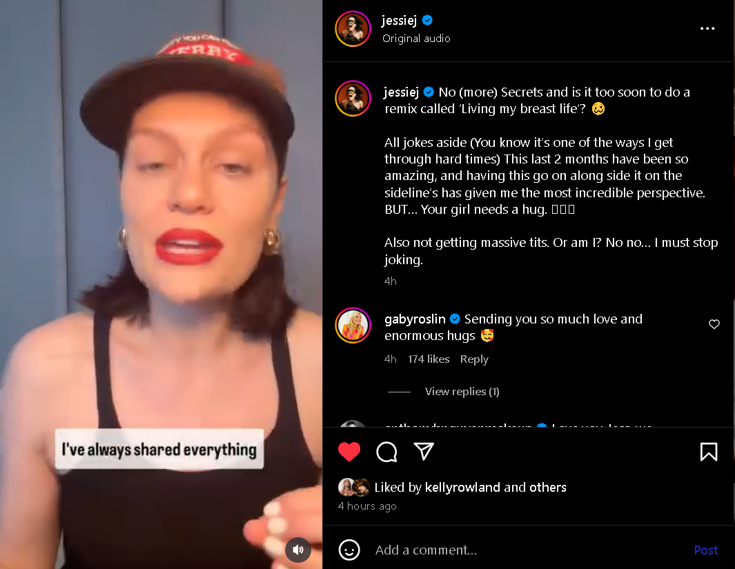 "The timing of it has been mad but also beautiful and given me this incredible perspective in this time," On her Instagram Story, Jessie gave an explanation. "But honestly I need to process it and talk about it and, I need a hug. You have loved me through all my good and hard times. And I don't want this to be any different."
