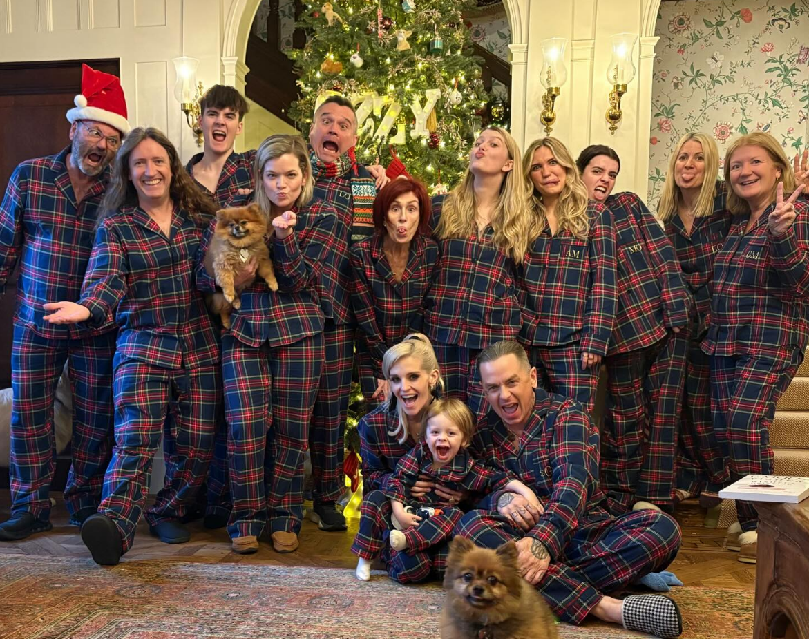 Kelly, 41, was seen kneeling in the middle of a picture with husband Sid Wilson and their 3-year-old son Sidney. The entire Osbourne family was dressed in matching plaid pajamas. As the rest of the family grinned for the camera, Sharon, 73, posed behind her daughter.