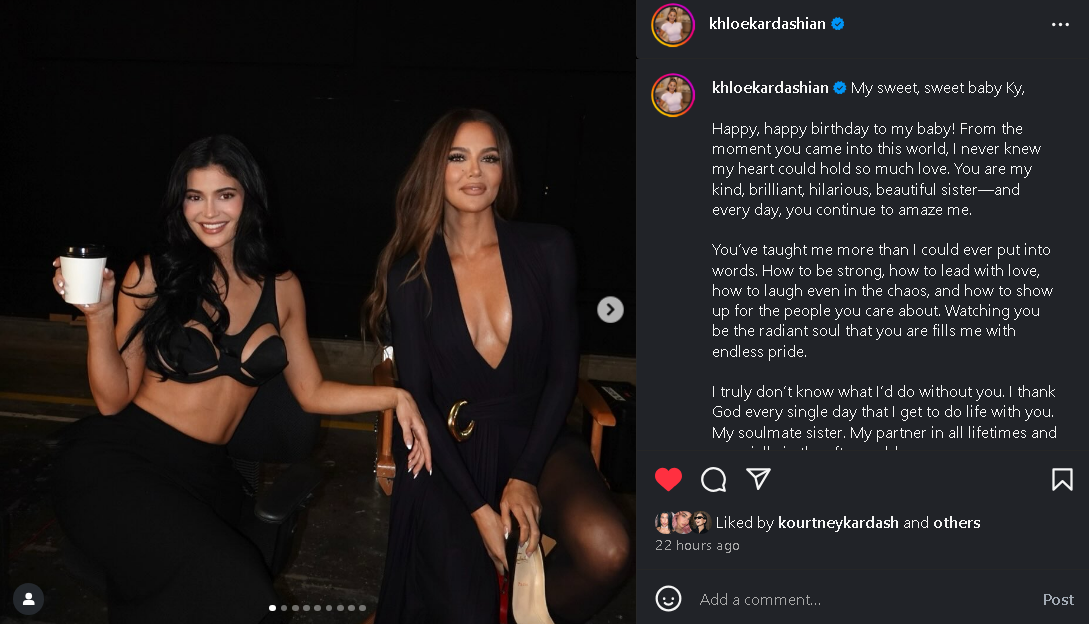 Among the many valuable lessons Kylie "taught" Khloe were “how to be strong, how to lead with love, how to laugh even in the chaos, and how to show up for the people you care about.” Khloe added.