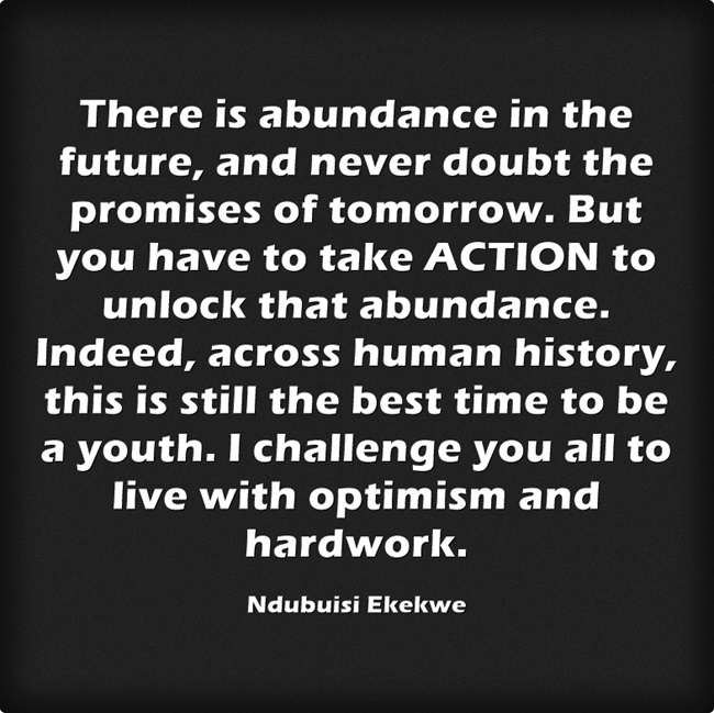 There is abundance in the future, and never doubt the promises of tomorrow. But you have to take ACTION to unlock that abundance. Indeed, across human history, this is still the best time to be a youth. I challenge you all to live with optimism and hardwork.