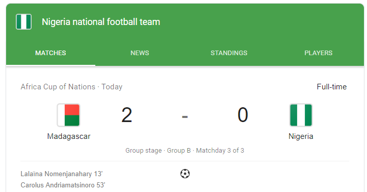 Quote from Ndubuisi Ekekwe on June 30, 2019, 5:07 PMUnbelievable even though we were already in the next phase! What is really wrong with Nigerian sports? What happened? They used to be good – but it seems getting 11 players in a nation of 190 million seems like fixing electricity. Do not tell me that it does not matter: it does.