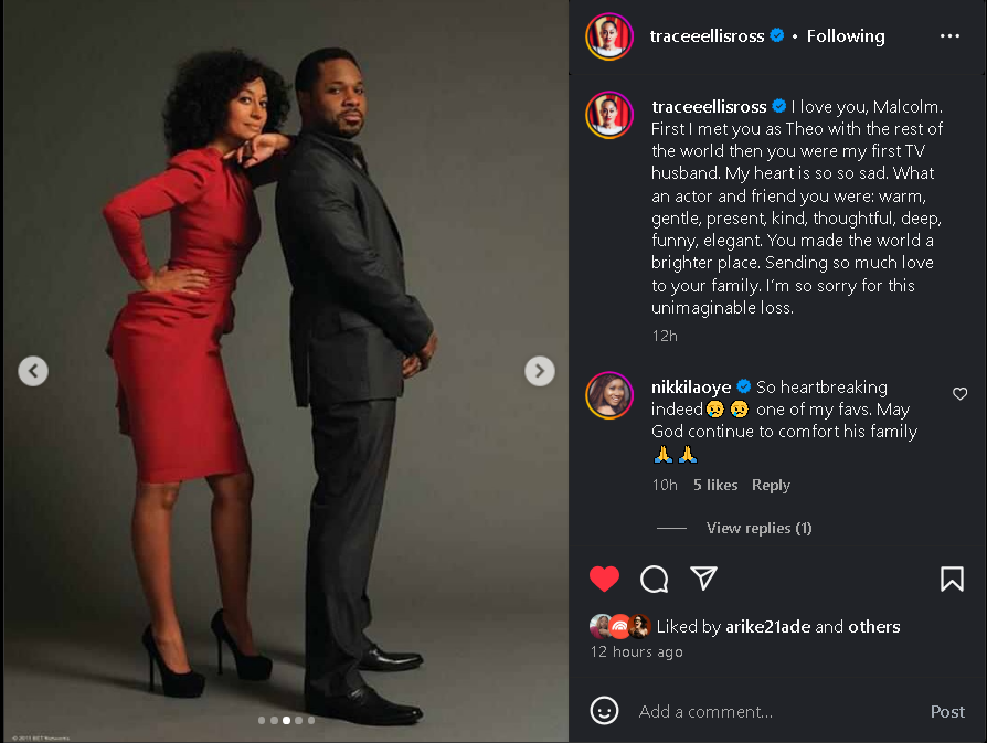 The actor's co-star on Reed Between the Lines, Tracee Ellis Ross, wrote on Instagram on July 21: "What an actor and friend you were: warm, gentle, present, kind, thoughtful, deep, funny, elegant." "You made the world a brighter place. Sending so much love to your family. I’m so sorry for this unimaginable loss.”